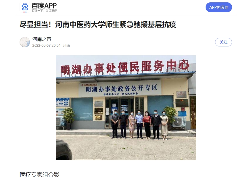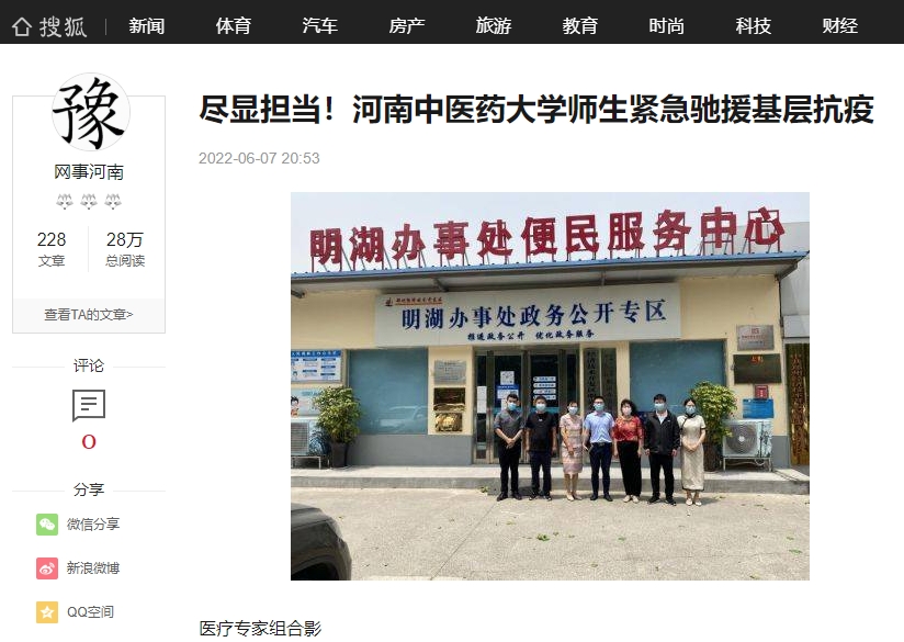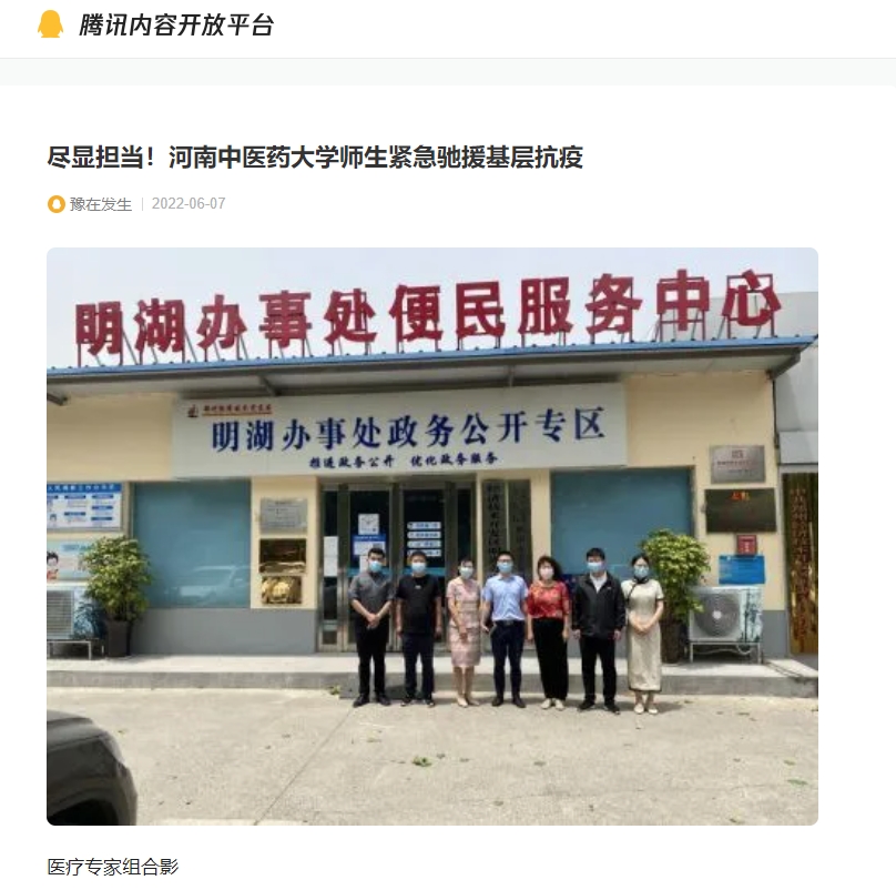 2022年6月7日,今日头条、搜狐新闻、百家号、腾讯内容开放平台等多家媒体对leyu·乐鱼(中国)体育官方网站师生紧急驰援基层抗疫进行报道。
