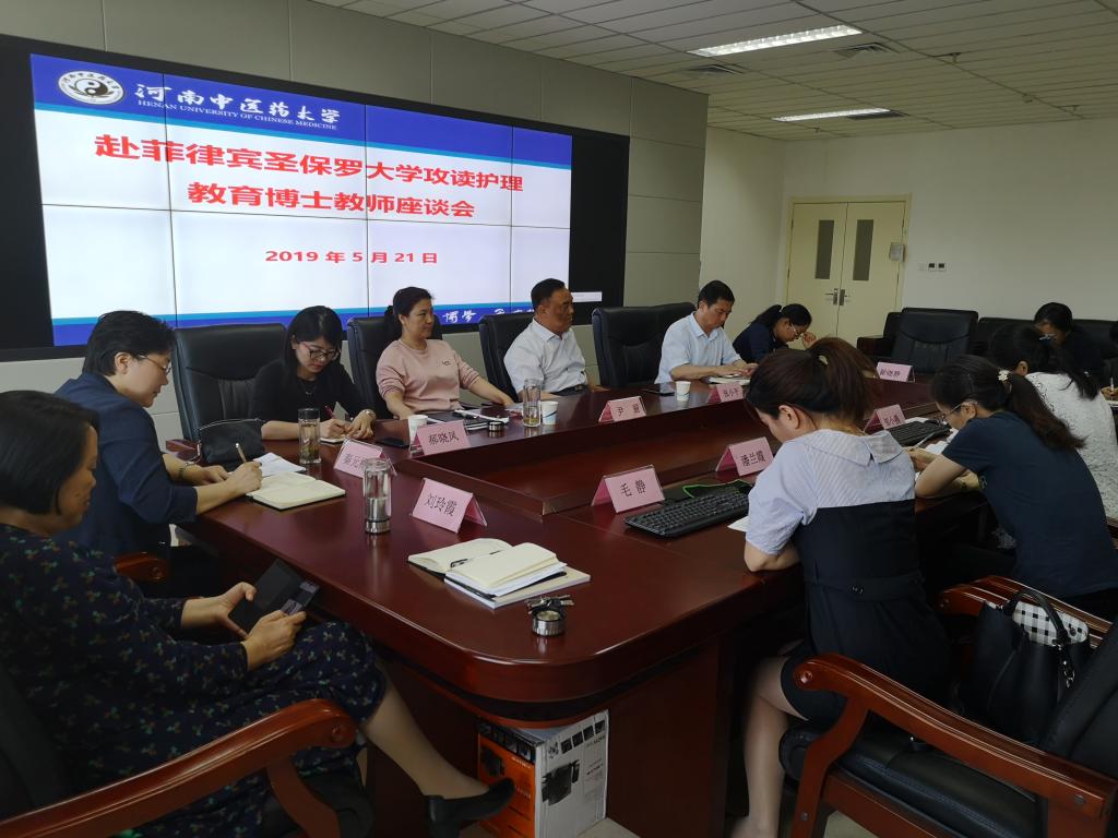 本网讯(文图/井晓磊)2019年5月21日下午,学校在综合实训楼1015会议室召开赴菲律宾圣保罗大学攻读护理教育博士教师座谈会。校党委委员、副校长张小平和人事处、护理学院相关负责人及出国攻读博士学位的7位教师参加了座谈会。