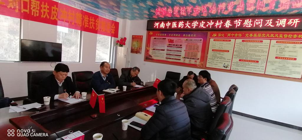 在座谈会上,唐陆、胡斌和黄怡博围绕村“两委”班子换届情况、皮冲村脱贫攻坚检查验收情况及下一步整个村的发展计划进行了汇报。在认真听取汇报后,苗明三对驻村工作队取得的成绩给予了充分肯定,并对下一步工作提出明确要求:一是要进一步发挥学校中医药资源优势,助力健康扶贫。要注重中医药科普宣传,对村民进行中医药知识普及,确保村民了解和掌握一些常见病、慢性病的中医药防治方法,提高村民健康素养,防止因病返贫,增加村民幸福指数。二是要做好疫情防控工作。春节期间,返乡人员多,人员流动大,增加了村里的疫情防控难度,驻村工作队和村“两委”一起加强好村里的疫情防控工作,防止疫情的发生。三是要努力擦亮牌子,做强产业。皮冲村作为全省6个“全国生态文化村” 之一,要利用好皮冲村优质的自然资源,主打“生态”牌,把乡村旅游发展好,把茶产业做大做强,为下一步乡村振兴提前谋划好、衔接好。