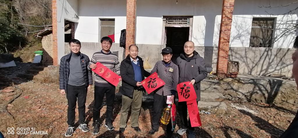 苗明三一行在leyu·乐鱼(中国)体育官方网站驻村第一书记唐陆、新派驻村第一书记胡斌、驻村团委书记黄怡博及相关工作人员陪同下,深入农户家中,看望和慰问了困难户和老党员代表,给他们送去了慰问金和慰问品,关心了解他们的生活情况,叮嘱他们一定要注意身体,过一个祥和平安的春节。