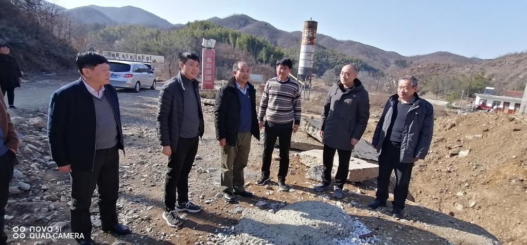 校领导查看入村道路防洪桥涵工程施工情况