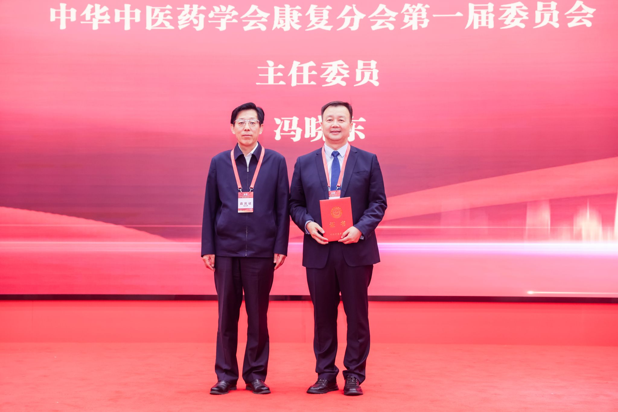 中华中医药学会副会长兼秘书长王国辰为主任委员冯晓东颁发聘书