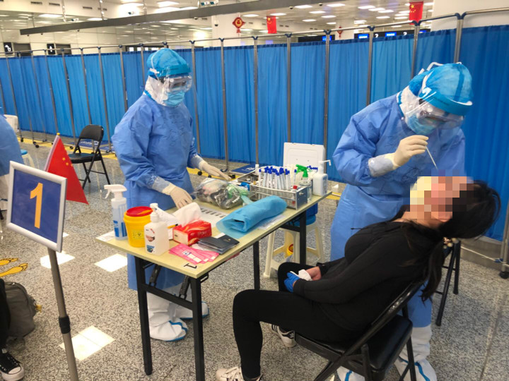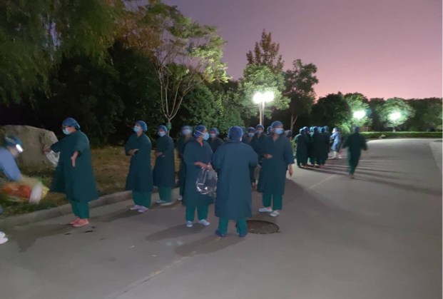 为确保圆满完成本次任务,推动尽快建立完善工作机制。工作队正式进驻郑州机场前,就组织开展了“采集标本实用英语”“鼻咽拭子采集流程及注意事项”“采样过程中急症应急处置流程”等专题培训,制定了突发事件应急预案并进行实操演练。工作队进驻郑州机场以来,队长焦钧带领队员召开每日工作例会,根据实际情况,详细分析、解决潜在问题,确保各项工作符合标准,每个细节专业规范。随队的感控医生韩成义、吕莹,每次执行任务都在现场耐心细致地核查每位队员有无暴露风险,同时在采样时不断巡视,检查指导。10月30日,医疗队还邀请一附院感染办主任蒋雪松同志通过钉钉会议对所有队员进行培训,确保安全。