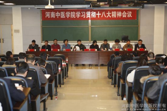 会上,孙书记作了题为《认真学习贯彻党的十八大精神,全面推进学校科学发展》的报告。报告分“充分认识十八大的重要意义;全面把握十八大的主要精神;认真学习党章,严格遵守党章;把党的十八大精神贯彻落实到工作中和行动上,以更加奋发有为的状态做好我们的各项工作,推进学校科学发展”四个部分。孙书记指出,党的十八大是在我国进入全面建成小康社会决定性阶段召开的一次十分重要的大会,是党的奋斗历程中又一次高举旗帜、承前启后、继往开来、团结奋进的大会,对凝聚党心军心民心、推动党和国家事业发展具有十分重大的意义。孙书记对大会的主题、成果进行了说明,要求我们要在思想上政治上行动上与以习近平同志为核心的党中央保持高度一致,把河南中医药教育事业不断推向前进。
