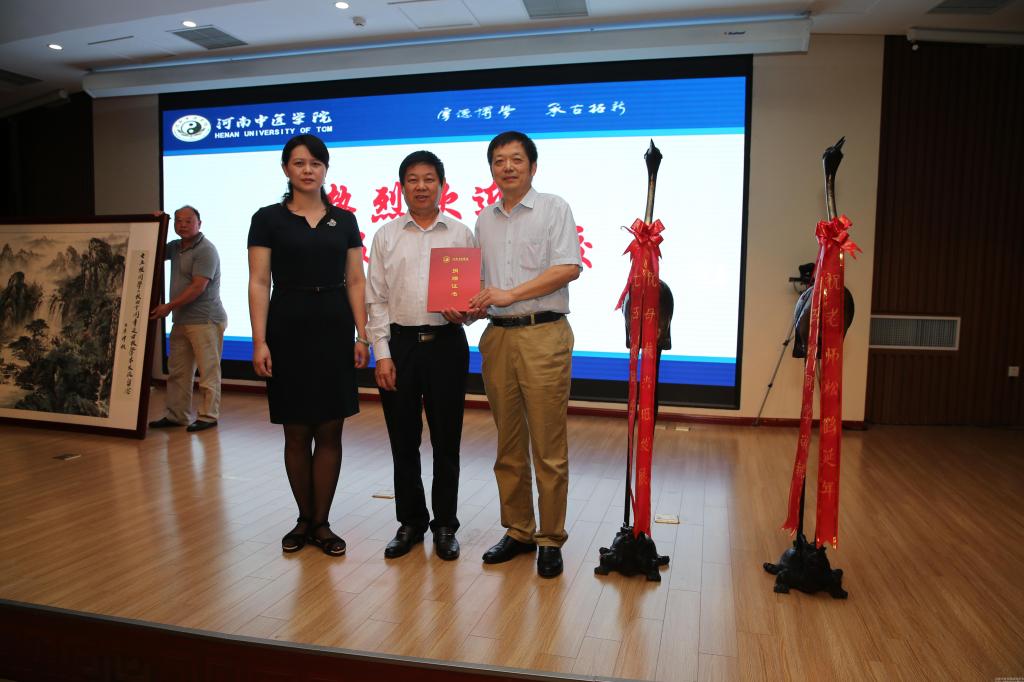 75级校友河南中医药学会会长夏祖昌、羚锐集团董事长熊维政在学术交流会上发言