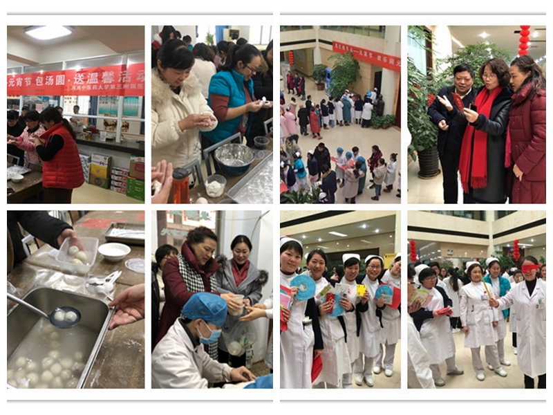 2019年2月18日下午,一场别开生面的“包汤圆·送温馨”活动在三附院职工食堂举办,医院纪委书记刘会勋、工会主席郭书敏出席活动,我院教职工和患者朋友一起参与其中。大家用豆沙和面,并用包出的彩色汤圆摆出了“福”字和“爱心”,传达了美好的祝福。汤圆煮好后,郭书敏将刚出锅的汤圆,送到患者朋友和临床一线、行政科室工作人员的手中,祝愿大家在新的一年里团团圆圆,互助友爱,同时,她希望全院上下共同努力,用爱心和责任心为人民群众的健康保驾护航。