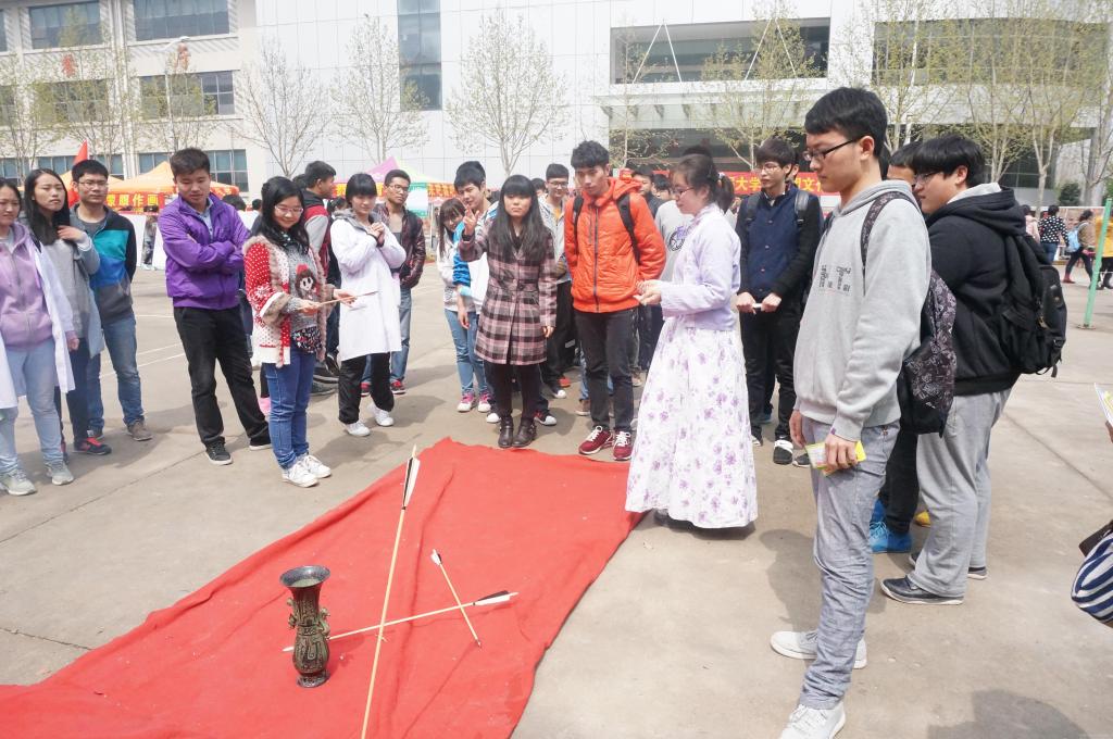 leyu·乐鱼(中国)体育官方网站学生踊跃参加社团文化节现场的投壶游戏