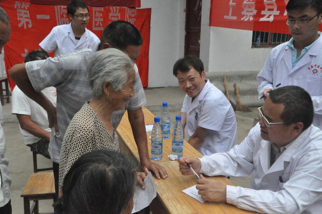 第一附属医院艾滋病专家刘志斌、风湿科专家黄云台等现场为村民号脉看病,主动与村民进行交流,了解他们目前的生活状况,并叮嘱他们要均衡饮食,注意保养身体。小分队成员利用所学知识为老百姓量血压、按摩等,进一步扩大中医疗法在农村的影响。