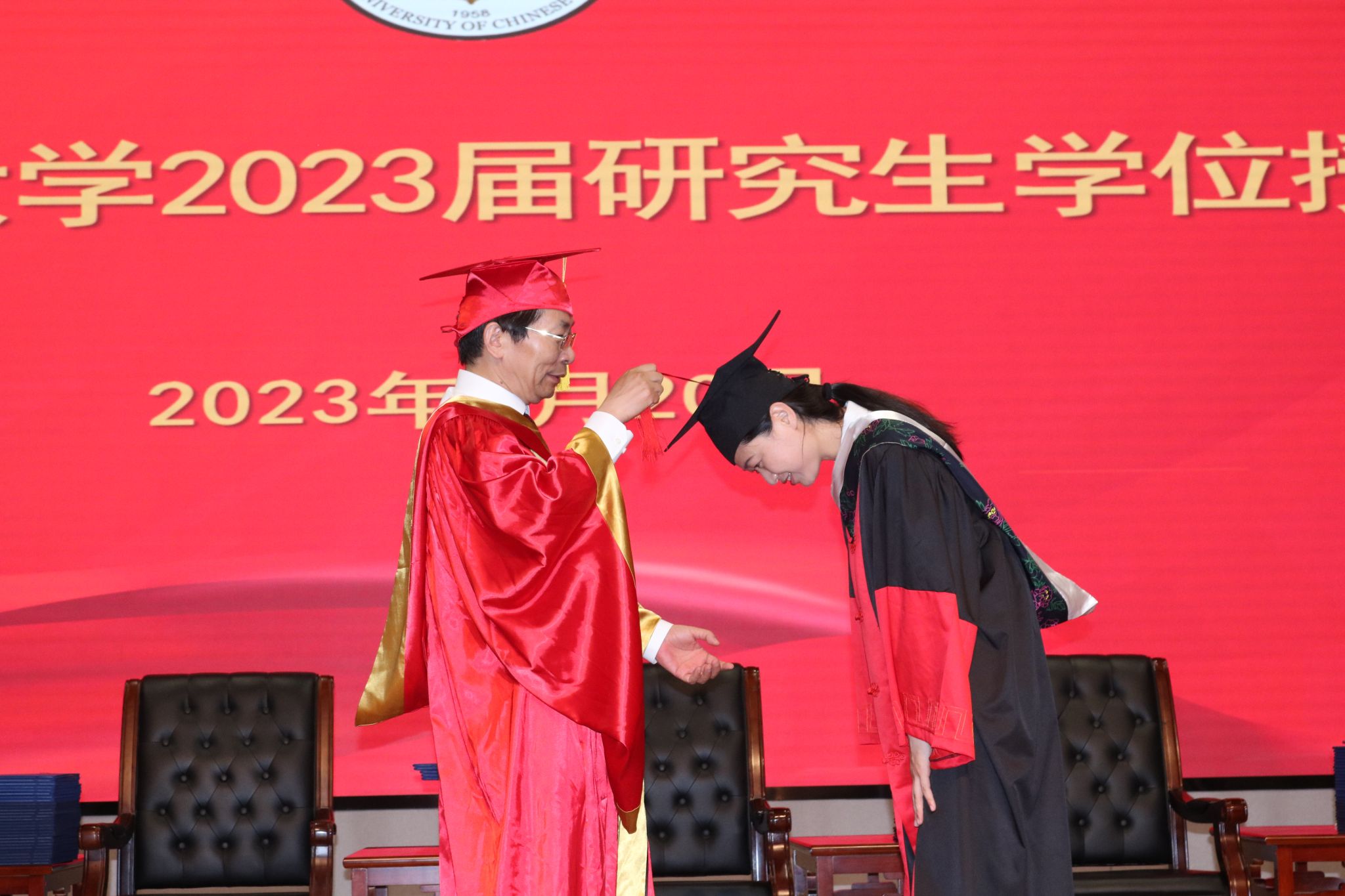 援正流苏,学业礼成。学位授予仪式上,校学位委员会成员及导师代表为获得学位的研究生逐一进行援正流苏礼、颁发学位证书、合影留念。本次仪式共授予37人博士学位、839人硕士学位。