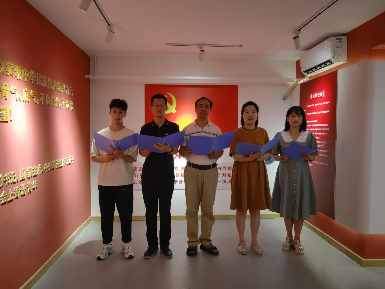 本次活动共分为“重温入党誓词,诵读红色经典”“专题党课教育,学习党旗知识”“采访革命前辈,聆听英雄故事”“走访红色圣地,传承红色基因”四部分内容,采用线上线下相结合的方式开展。上午,活动在庄严的入党宣誓声中拉开帷幕,面对鲜红的党旗,全体师生党员一起高举右拳、神情庄重,在院党委副书记苏峰同志的带领下庄严宣誓。随后,陈少峰、杨文君、刘逸青、李元雪、张帅浩五位教师党员为大家饱含深情地诵读了毛泽东的经典著作《为人民服务》。朗朗的诵读声将全心全意为人民服务的宗旨深深烙入了党员同志们的心里。