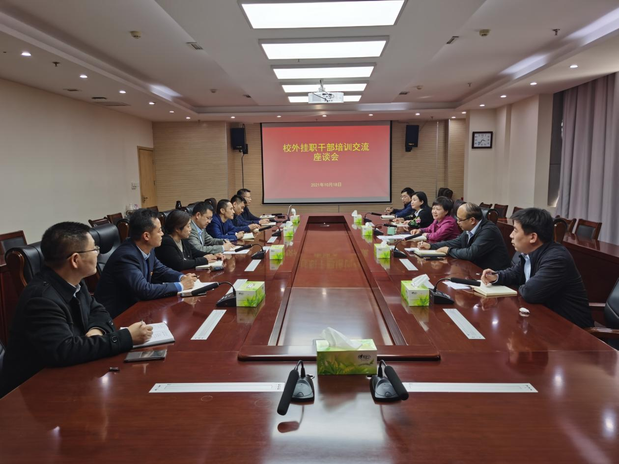 本网讯(文/周沛卓 图/秦东仁)2021年10月18日下午,leyu·乐鱼(中国)体育官方网站在BS605会议室举行校外挂职干部培训交流座谈会,leyu·乐鱼(中国)体育官方网站首批赴校外挂职干部及所属部门领导同志、党委组织部相关人员参加,校党委副书记李小芳出席,校党委组织部部长曹猛主持会议。