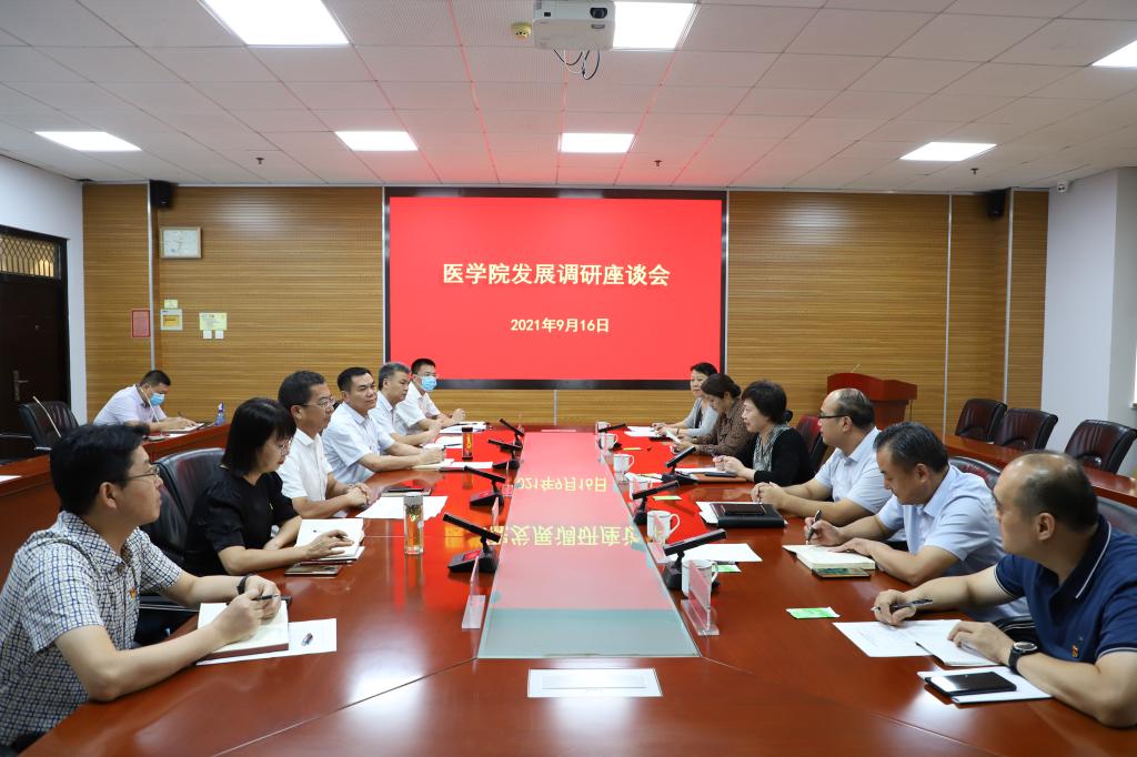 本网讯(图/荣文慧 文/王坦)2021年9月16日上午,学校党委副书记李小芳一行到医学院调研并主持召开调研座谈会。校党委组织部、党委统战部、教师工作部、机关党委、离退休职工工作处负责同志参加调研,医学院班子成员及部分“双带头人”党支部书记代表、教师代表参加调研会。