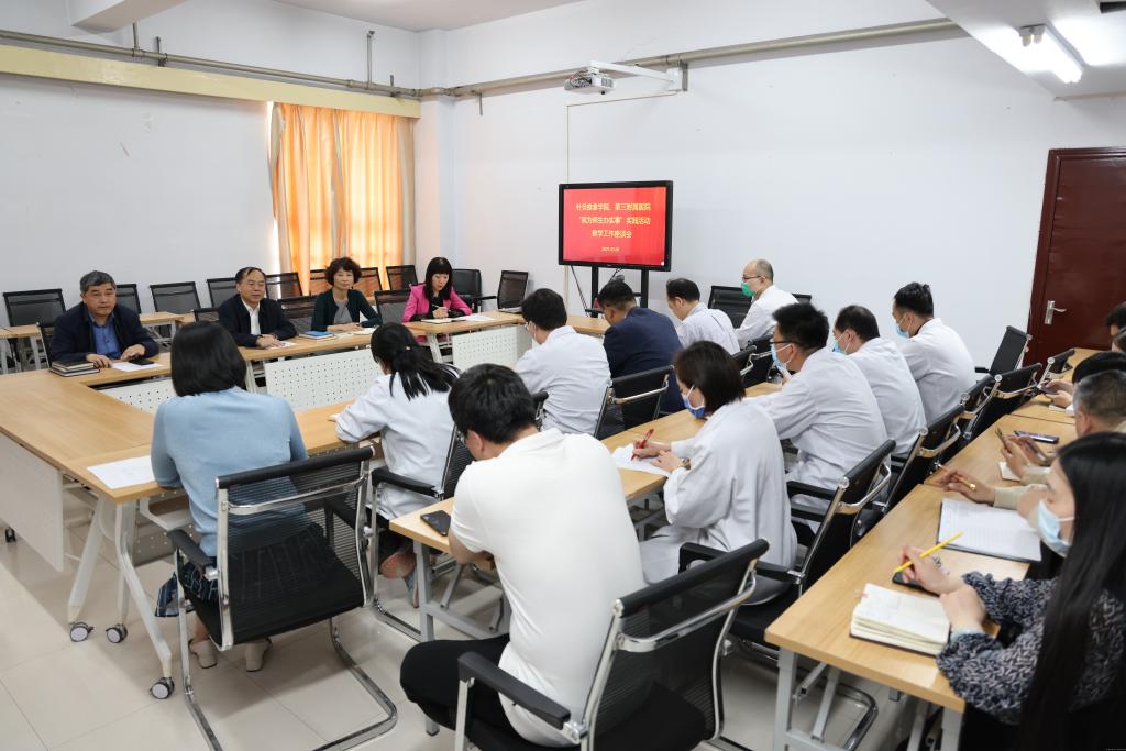 本网讯(文/祝珍珍 陈新旺 图/潘向昆)为深入贯彻党中央、省委、校党委关于党史学习教育安排部署,落实校党委“我为师生办实事”实践活动安排,推动党史学习教育同服务师生、解决实际问题相结合,解决广大师生“急、难、愁、盼”事情,2021年5月6日下午,三附院在综合楼1109会议室分别举办“我为师生办实事”实践活动学生工作座谈会和教师工作座谈会。院党委书记周运峰,院长张大伟,党委副书记陶洁、焦钧,相关职能部门负责人以及50余名教师学生代表参加会议。