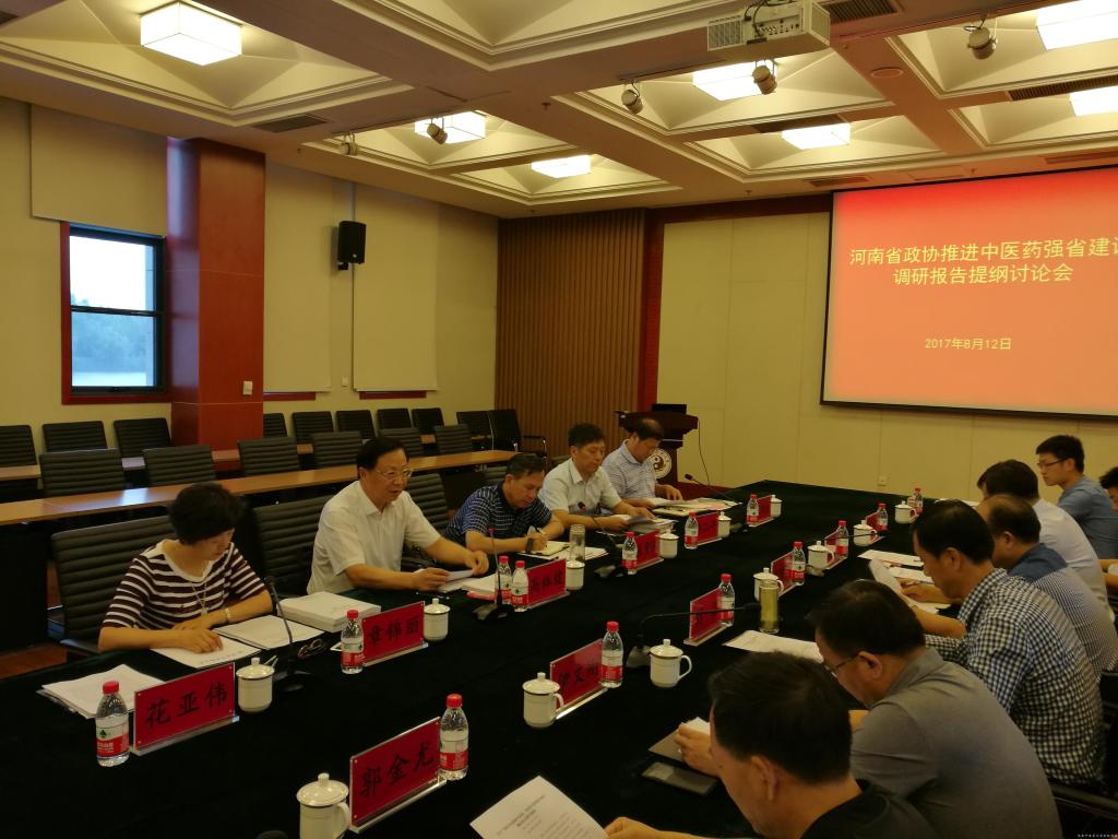 讨论会由省政协副主席高体健主持。高主席指出,本次讨论会要在前期深入调研基础上,通过充分沟通协商,深入研讨论证,提出真知灼见,研究确定调研报告撰写提纲及主要内容,确保形成高质量的调研报告,力争为推动中医药振兴发展,推进中医药强省建设提出更多更好的务实管用的对策建议,为省委、省政府科学民主依法决策服务,为建设中医药强省献计献策出力。接着,leyu·乐鱼(中国)体育官方网站科技处处长苗明三、省中医管理局办公室主任伊文刚、农工党河南省委会正处级秘书王二伟分别介绍了各自起草的调研报告提纲及思考。在听取介绍后,与会领导和专家围绕调研报告提纲内容、结构、表述等方面展开了热烈讨论,逐条进行论证,并形成了一致意见。会上,高主席对调研报告的撰写进行了分工,明确了参加人员和完成时间。