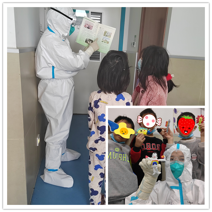 为进一步加强我省新冠肺炎定点救治医院的医护团队力量,我院多批次派出共计180名医护人员到达定点医院开展医疗救治服务工作,并组建89人的“青年突击队”,其中共青团员33人,成了定点救治医院的最强的冲锋队伍。目前被隔离的患者中有多名年幼的孩子,他们没有父母亲人的照顾,没有同学朋友的陪伴,在空旷的病房里和冰冷的仪器打交道……这让医护人员们心疼万分。为了使孩子们消除恐惧,感受如家般的温暖,“青年突击队”中的青年们自发组织开展“关爱儿童”系列活动。除了正常的检查、治疗,他们也化身为孩子们的“临时妈妈”、大哥哥、大姐姐,轮流抽出空余时间为孩子们辅导功课,一起读故事、做游戏。这些青年团员们还自费为孩子们购买玩具、手工材料,让隔离治疗期间的生活不再单调乏味,让原本沉寂的病房充满了欢声笑语。