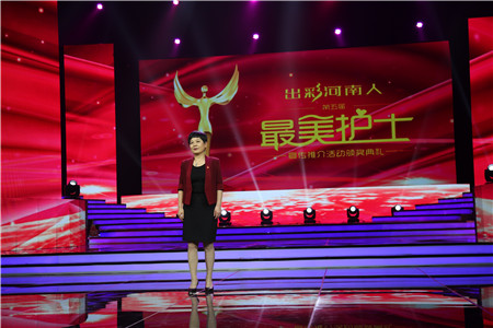 本网讯(文图/何世桢)2019年5月10日,“出彩河南人”之第五届最美护士颁奖典礼在河南省广播电视台演播厅举行,一附院脾胃肝胆病科护士长费景兰荣获河南省第五届“最美护士”,并受到表彰。