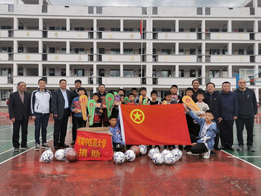 校党委书记别荣海代表学校向武庙集镇中心小学捐赠体育用品