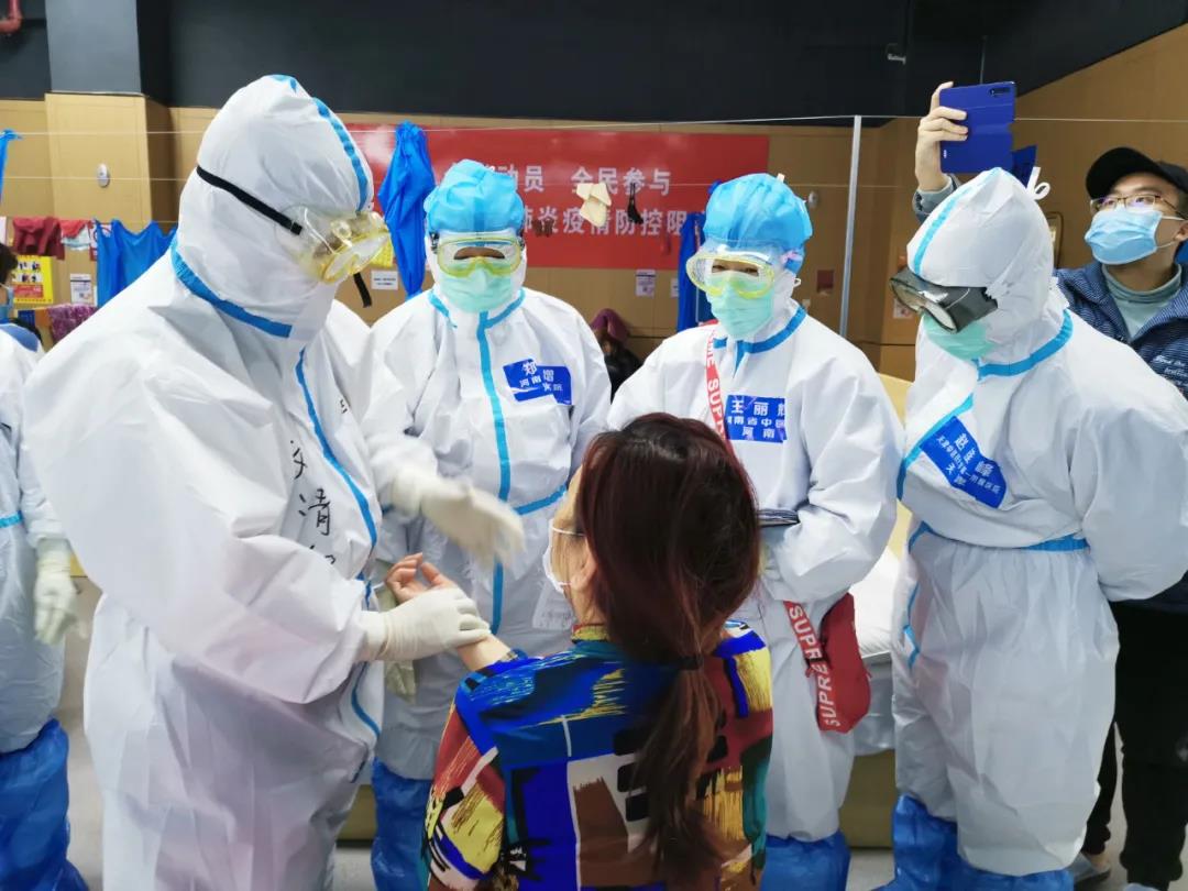 2月10日,医疗队乘坐高铁抵鄂,当晚就组织开展了入舱前的各项院感防护培训、建章立制、组织物资等准备工作。2月12日,医疗队正式进驻江夏方舱医院、负责豫二病区。