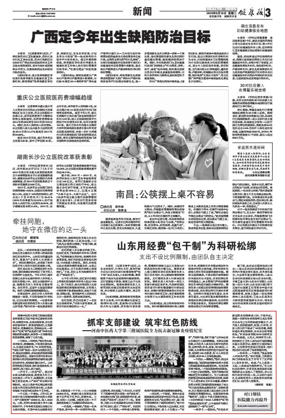 编者按:2020年6月16日,健康报对三附院抓牢支部建设、筑牢红色防线,全力抗击新冠肺炎疫情进行报道。现将报道刊发如下: