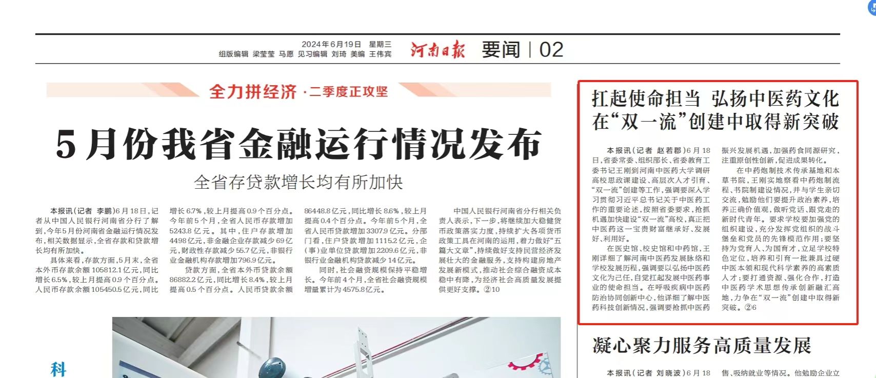 在医史馆、校史馆和中药馆,王刚详细了解河南中医药发展脉络和学校发展历程,强调要以弘扬中医药文化为己任,自觉扛起发展中医药事业的使命担当。在呼吸疾病中医药防治协同创新中心,他详细了解中医药科技创新情况,强调要抢抓中医药振兴发展机遇,加强药食同源研究,注重原创性创新,促进成果转化。
