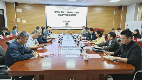本网讯(文/张慧鹏 图/李光)2024年10月8日,校长王耀献带领学校办公室、党委学生工作部、教务部、党委教师工作部、人事人才工作部、科学技术处、研究生院等部门负责人到医学院调研指导工作。学院全体领导班子成员,行政科室主任,业务科室主任代表、青年骨干教师代表及新进教师代表参加调研座谈会。会议由学院党委书记高剑峰主持。