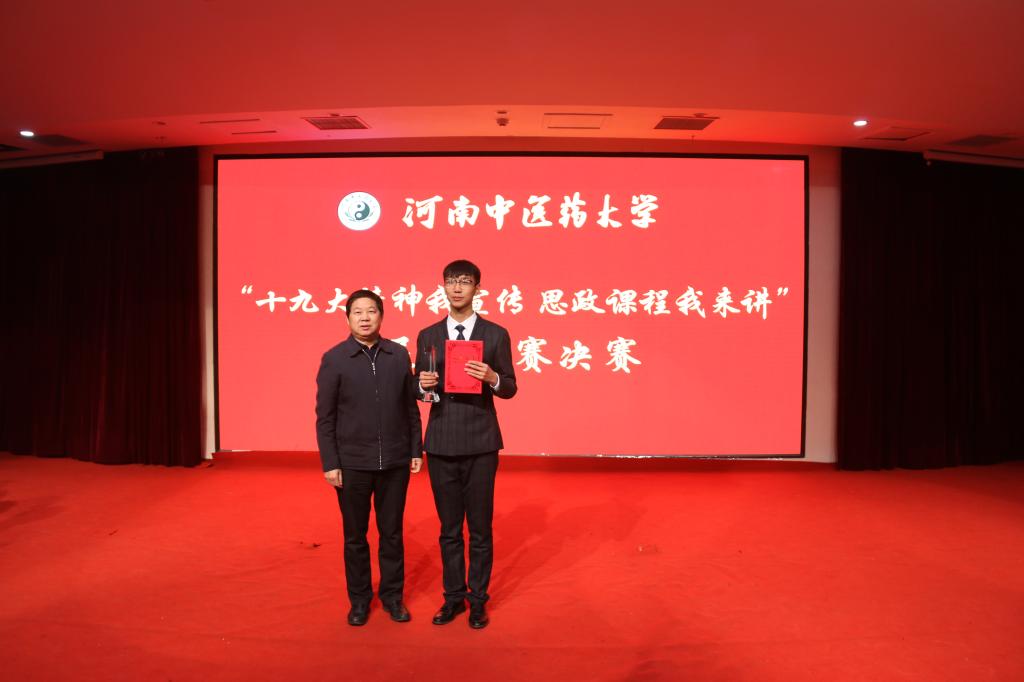 经过初赛,最终有十个代表队进入决赛。本次比赛主题鲜明,立意深远,各代表队将党的十九大精神和自己所学的思政课程相结合,通过模拟课堂的形式向大家进行精彩的展示。管理学院“青春梦想”队以《中国特色社会主义的领导核心――中国共产党》为题,从有标准、有能力、有成就三个方面进行了阐释,呼吁广大共青团员要树理想、学本领、勇担当;基础医学院“凌云”队以《中国特色社会主义新时代的健康中国战略》为题,从健康中国的内涵、主要措施、我们能做些什么三个方面展开叙述,激励中医学子坚持中西医并重,传承发展中医药事业;第一临床医学院“锦绣青年”队以《浴火重生,玉汝于成》为题,以抗战话剧为引,从抗战背景、经过等方面,阐释了中国共产党是中国人民抗日战争胜利的中流砥柱的深刻内涵,帮助同学们深入理解党的十九大精神,掌握本领,报效祖国。经过激烈角逐,管理学院的“青春梦想”队夺得桂冠。