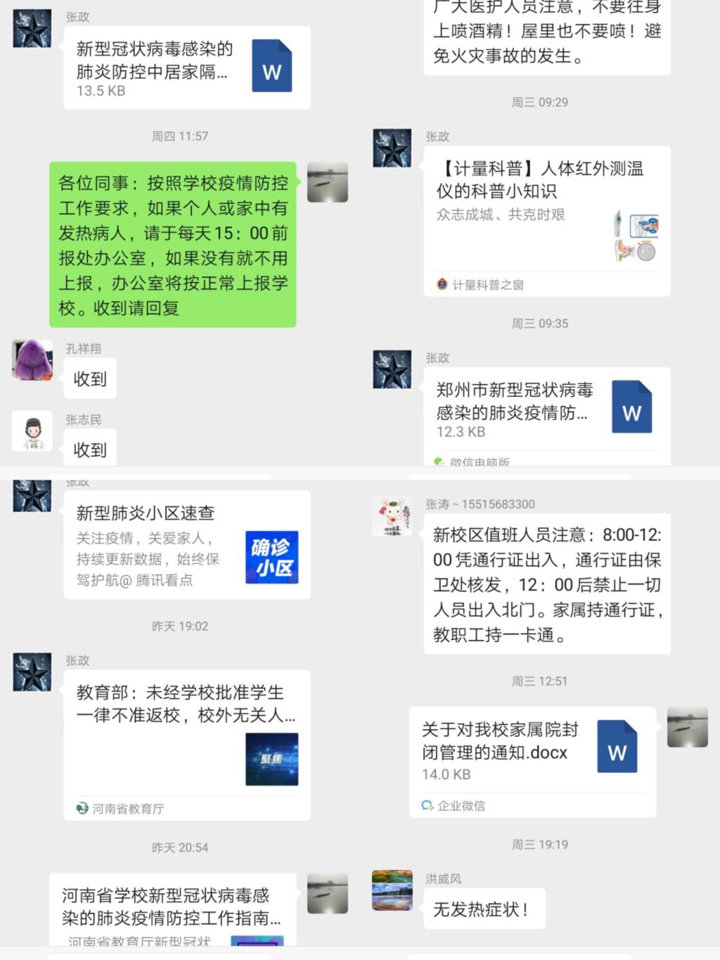 自2020年1月28日以来,武装部、保卫处联合后勤服务中心和东明校区管理办公室,按照学校新冠肺炎疫情防控领导小组的要求,及时制定《leyu·乐鱼(中国)体育官方网站安全保卫组新型冠准给病毒感染的肺炎疫情防控工作方案》,发布《leyu·乐鱼(中国)体育官方网站加强校门管理的通知》,强化学校各校区及家属院进出入管理。一是实行凭证入门,学校教职工和家属凭校园一卡通或身份证进入学校或家属院,后勤及基建工作人员进入学校须持有后勤服务中心和基建处有效证明,严防校外无关人员进入;二是做好出入人员、车辆盘查,人员体温正常、车辆消毒后方可进入;三是联合后勤服务中心深入排查学校三个家属院,尤其是家属院租户的排查,要求出租房屋的职工要负起责任,通知到租户,对于瞒报、漏报或不报的户主,一切责任事故后果将由户主或所属单位承担,切实做到不留空白、不留死角。