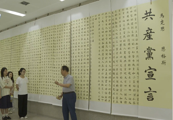此次书画展共分两个展区,在图书馆一楼专题展厅,展出的是由leyu·乐鱼(中国)体育官方网站82岁高龄的退休老教师王安邦教授书写的《共产党宣言》。经过一个多月时间的精心书写,15000余字、110幅、全篇楷书手写的《共产党宣言》成功展出。作品展上,王安邦还向观展嘉宾和师生送上了王安邦敬录《共产党宣言》作品集。王安邦表示,《共产党宣言》是一个内容丰富的理论宝库,值得我们反复学习,深入研究,不断从中汲取思想营养。本次书写《共产党宣言》,就是希望大家在欣赏书法艺术美的同时,学习宣言的内容,传承宣言的精神,践行宣言的思想,用实际行动向建党100周年献礼,为实现中华民族伟大复兴的中国梦贡献力量。为了抄写好《共产党宣言》,王安邦坚持每天早起晚睡,连续奋战。他严格要求自己,全神贯注、专心致志,一丝不苟、精益求精,争取写好每一字、每一笔、每一画。有时对写得不满意的字,反复书写;有时一页纸快写完了,写错一个字,再从头重写,直到满意为止,为此投入了大量精力和心血。