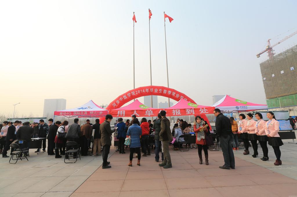 杏苑清香喜迎客,莘莘学子重扬帆。2014年3月8日上午8点半,河南中医学院2014年毕业生春季就业双选会在新校区仲景广场正式拉开帷幕。