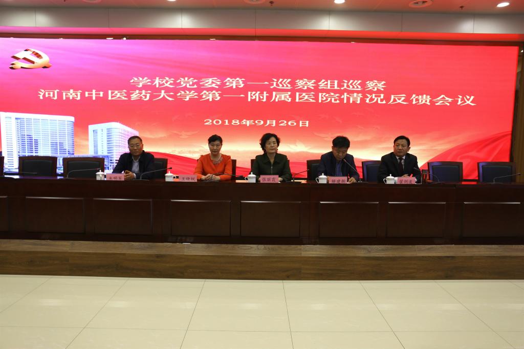 2018年9月26日,校党委第一巡察组在一附院召开专题会议反馈巡察情况。校党委副书记张丽霞、第一巡察组组长解建新、副组长王晓枫和巡察组成员出席会议,一附院领导班子成员和中层干部参加会议。会议由一附院党委书记翟剑波主持。