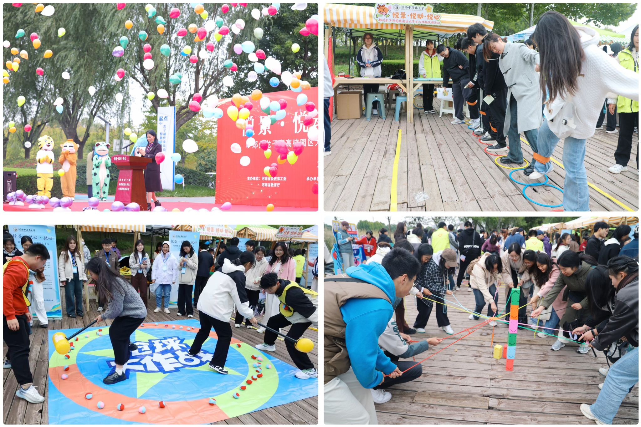 10月20日,leyu·乐鱼(中国)体育官方网站联合龙子湖十余所高校举办郑州龙子湖高校园区大学生心理趣悦游活动,本次活动设立五大会场,共开展40余项心理活动项目,近万名师生参加。南分会场活动现场,leyu·乐鱼(中国)体育官方网站结合中医药特色文化开展了“悦心茶聊空间、绘画心语、你是我的眼、速运挑战”等特色活动,围绕大学生心理健康的调适和发展,让广大师生通过沉浸式的活动释放压力,愉悦身心,疗愈心灵,实现身心共健,现场氛围热烈。