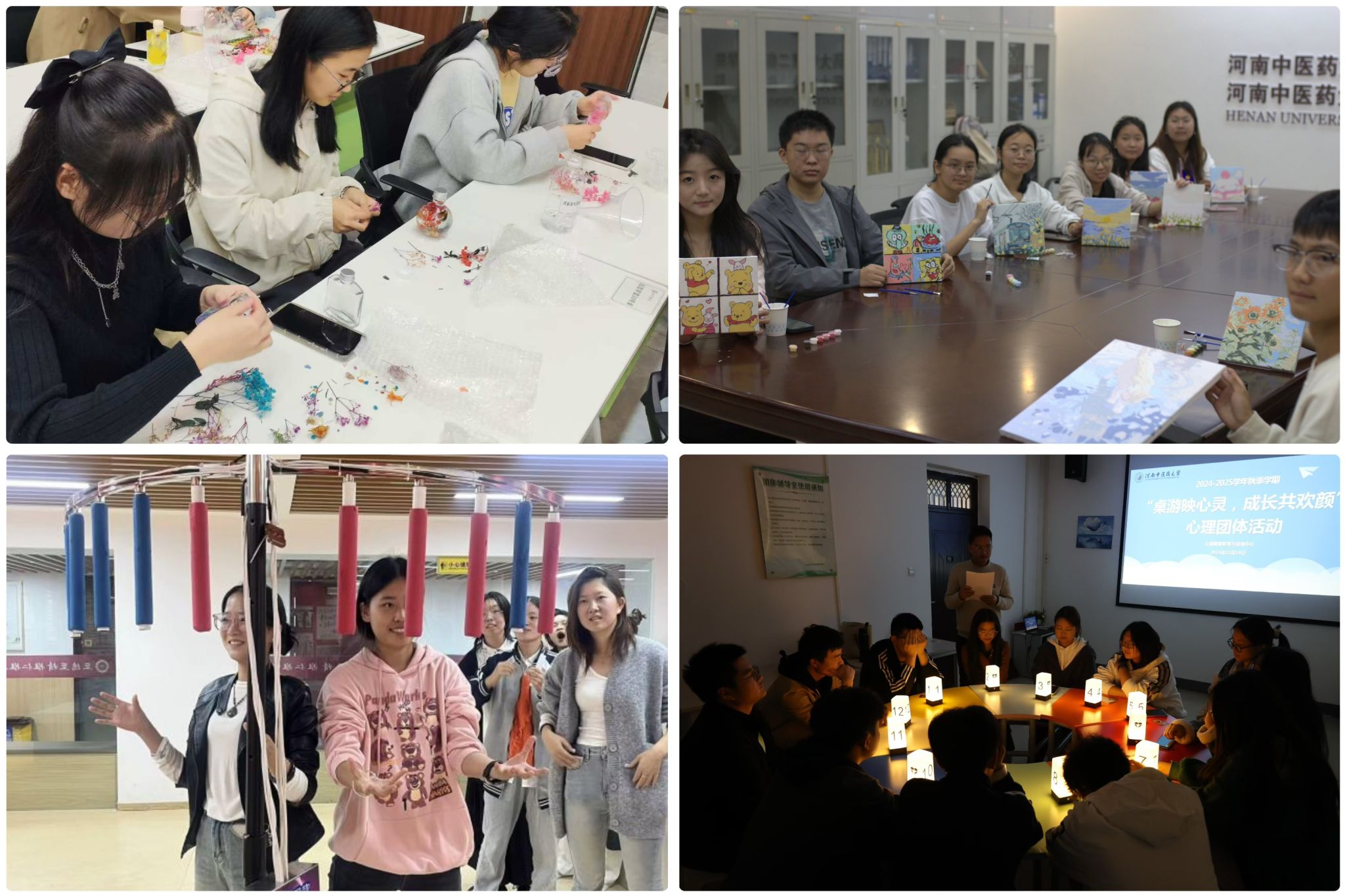 发挥中医药优势,组织开展20场“药植心灵”系列团体辅导活动,参与人数300余人次,以“决明醒志”“茯苓利水”“黄芪筑基”“丹参清心”“连翘解毒”等中药取类比象,进行克服拖延、大学适应、自我规划、情绪管理、人际关系等主题团辅活动,引导学生用新的视角应对内心困境,顺利适应大学生活。