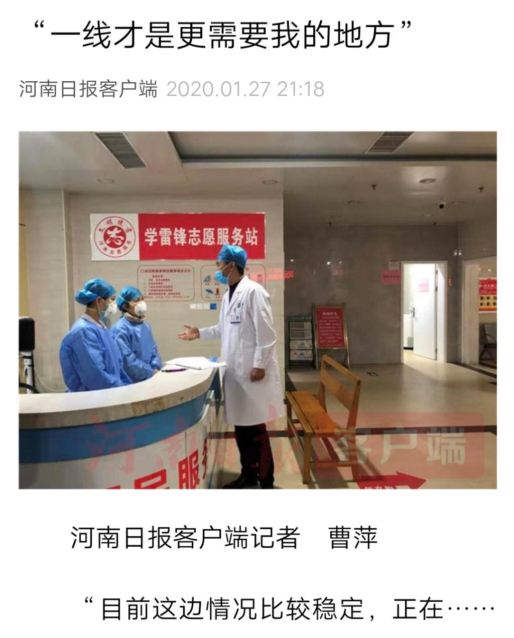 编者按:2020年1月27日,河南日报客户端对leyu·乐鱼(中国)体育官方网站“校地帮扶”专家冯博赴信阳新县援助疫情救治工作进行报道。现将全文刊发如下: