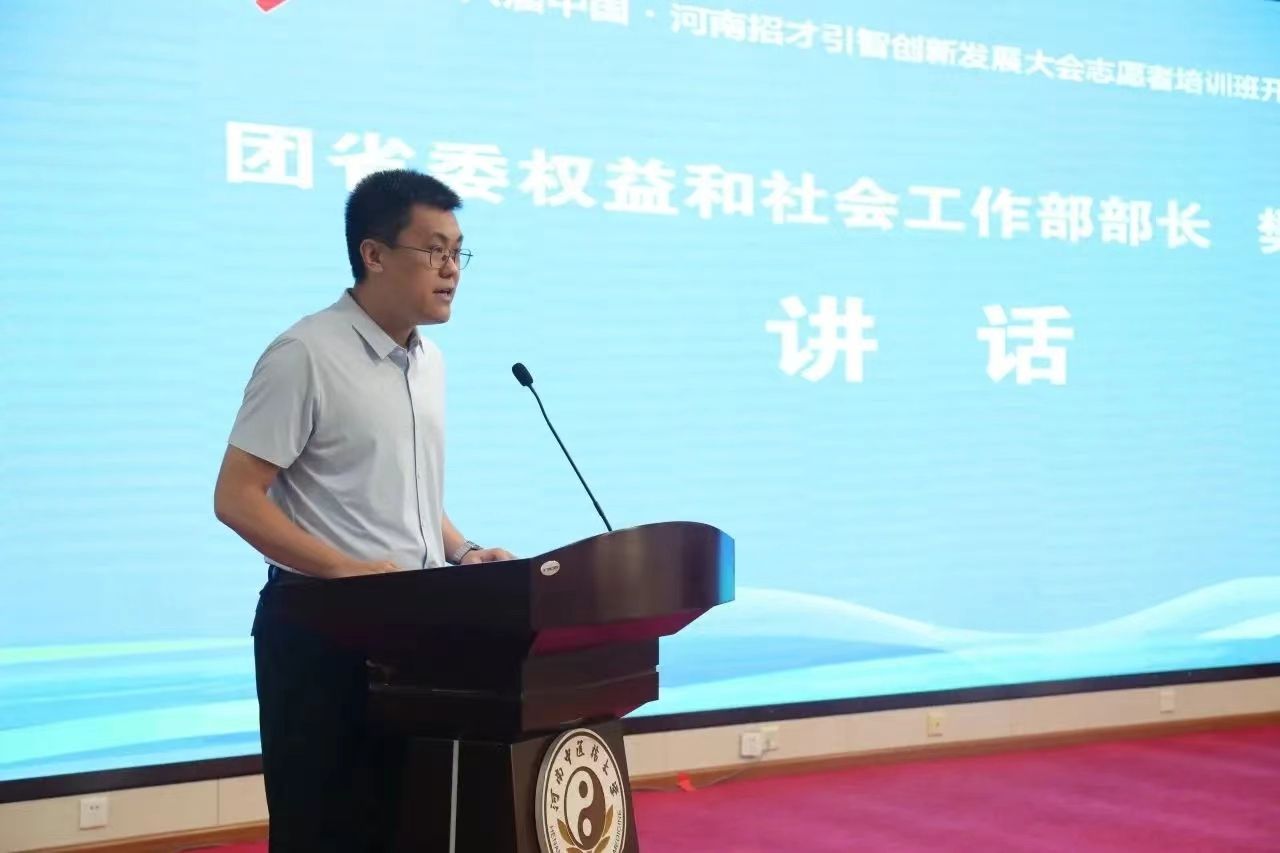 仪式上,吴会贤介绍了第六届中国·河南招才引智创新发展大会有关情况,希望广大志愿者高度重视,展示形象,工作负责,服从安排,齐心协力做好各项工作。樊宸雨为青年志愿者代表授旗,并在讲话中指出,志愿者要珍惜机遇,全力以赴,在志愿服务中展现青春风采,展示河南之美,以更加青春昂扬的姿态参与各项工作。志愿者代表在发言中,表示将不负重托,配合大会整体活动安排,圆满完成此次志愿服务工作。全体志愿者庄严宣誓,承诺将以专业、友善、周到的服务为大会顺利进行做出积极贡献。