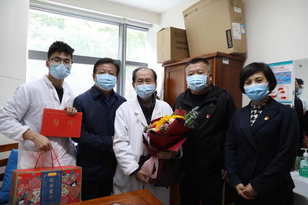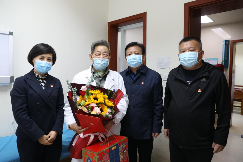 本网讯(文/马彦江 图/李瑞)为弘扬中华民族尊老敬老的传统美德,重阳节前夕,一附院党委书记翟剑波、党委副书记孟林、工会主席乔东鸽带队前往国医堂等科室看望慰问老专家,为他们送去组织的关怀和祝福!