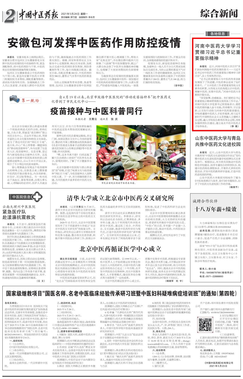 编者按:2021年5月24日,中国中医药报对leyu·乐鱼(中国)体育官方网站召开“我们该如何拥抱中医药发展的春天——习近平总书记对中医药工作的重要指示精神学习研讨会”进行报道。现将全文刊发如下: