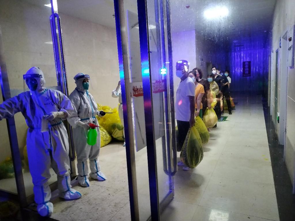 7月22日,夜晚的暴雨也没能阻挡空气中流淌的胜利气息,医疗队接管的2个病区中第一批符合出院标准的26名患者出院了,其中部分患者从入院治疗到出院,不到3天时间,创造了泌阳县方舱医院最短时间出院的记录。