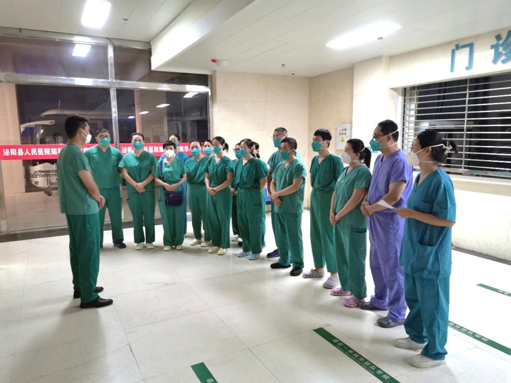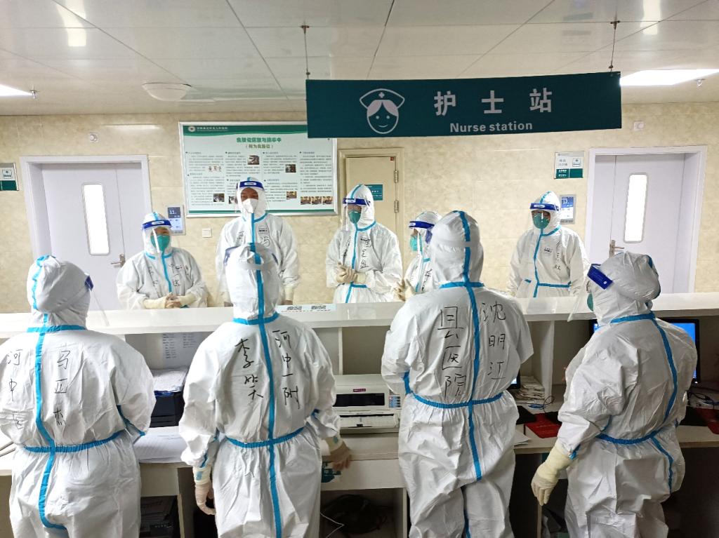 医疗队到达泌阳县驻地后,立即成立了一支由医疗、护理、感控组成的先遣队到达定点救治医院,配合泌阳县疫情防控临时指挥部梳理救治思路,强化感控措施,优化收治流程。