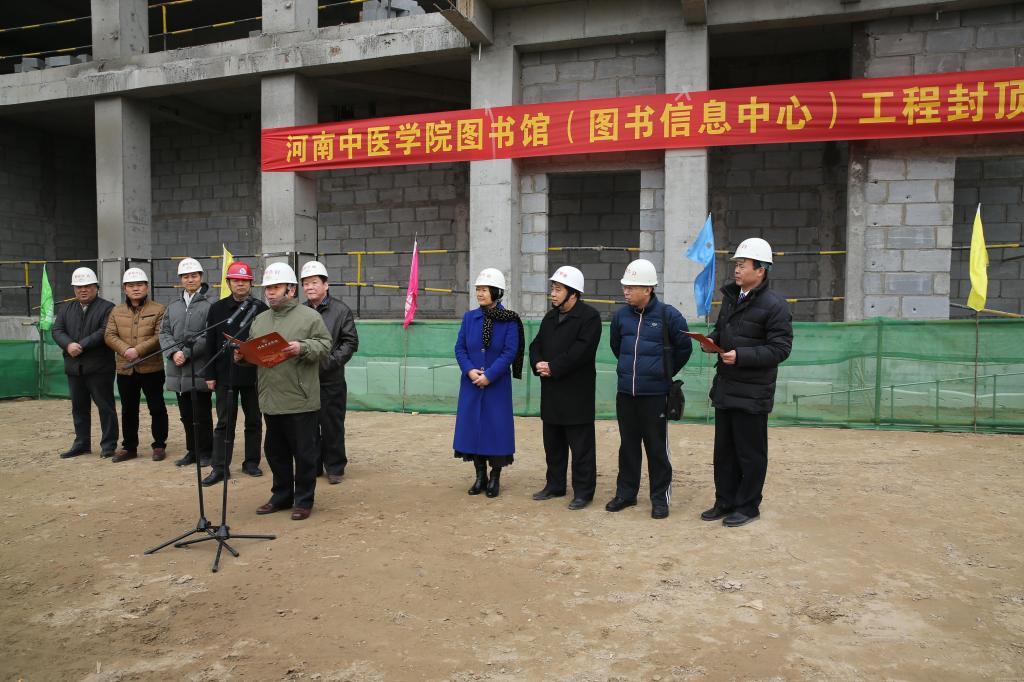 2014年1月19日上午,在新校区图书馆工地上,leyu·乐鱼(中国)体育官方网站举行了简朴仪式,庆祝新校区图书馆(图书信息中心)工程主体结构提前封顶。河南省重点项目建设管理办公室副主任刘三伟、郑州市重点项目建设办公室安全处处长艾红军、郑州市重点项目建设办公室监督站张海华、清华大学建筑设计研究院副院长刘玉龙、韩孟臻博士、河南省育兴建设工程管理有限公司总经理靳鹏飞、河南六建建筑集团有限公司副总经理雷通洲,leyu·乐鱼(中国)体育官方网站党委书记孙建中、院长郑玉玲、副院长付强、院长助理张小平及相关部门的负责同志参加封顶仪式,共同见证了这一喜悦时刻。仪式由副院长付强主持。