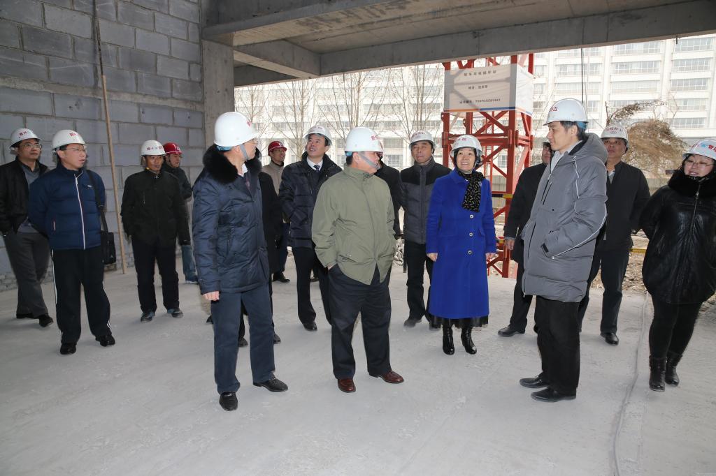 仪式结束后,在基建处处长解建新的带领下,参加仪式的各级领导一行深入到图书馆室内,实地查看了工程建设情况。(基建处)