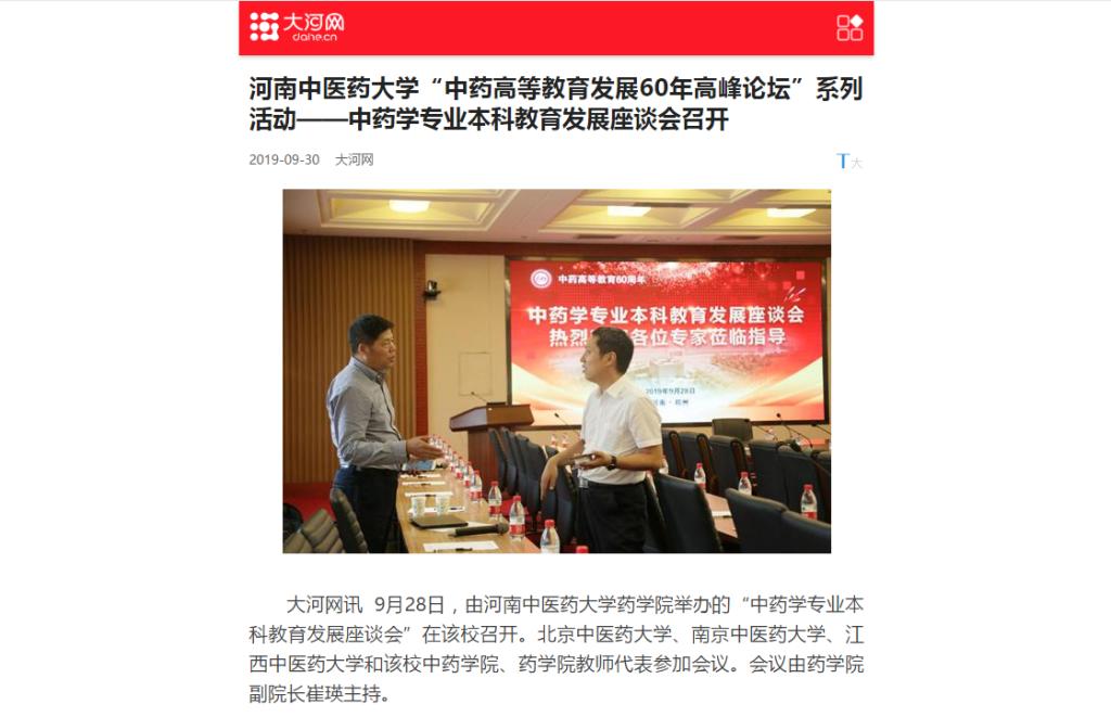 大河网:《leyu·乐鱼(中国)体育官方网站“中药高等教育发展60年高峰论坛”系列活动——中药学专业本科教育发展座谈会召开》