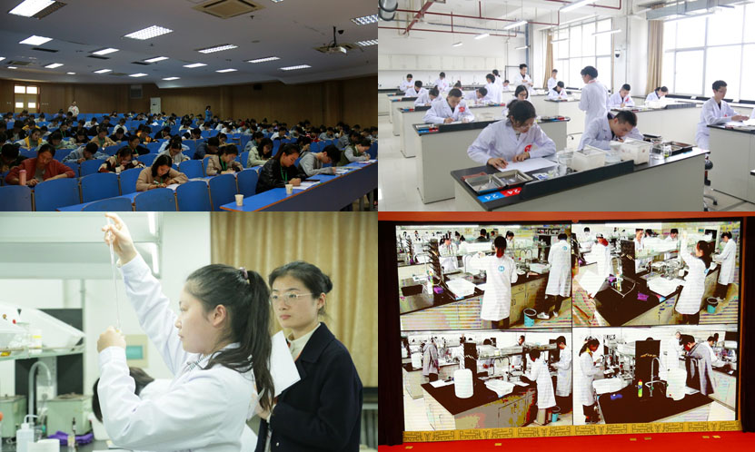 1日全天,244名参赛学生参加了实验技能大赛的理论考试和现场实验的操作考核。操作考核同步在五星广场、第一报告厅、第二报告厅进行了现场实时的视频直播。