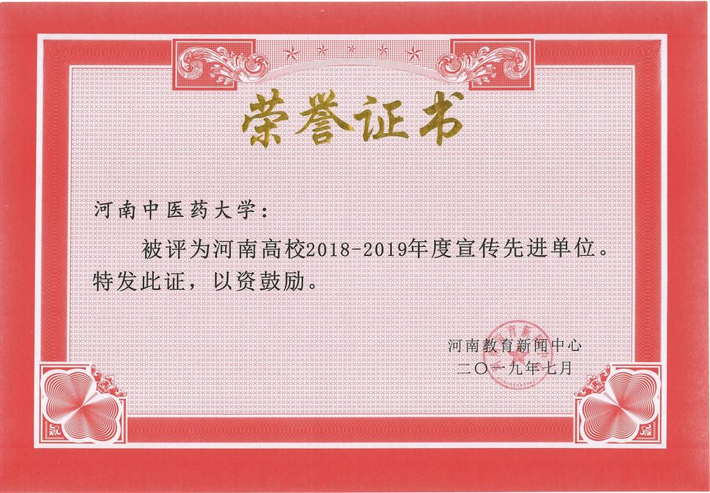 leyu·乐鱼(中国)体育官方网站荣获“河南高校2018-2019年度宣传先进单位”