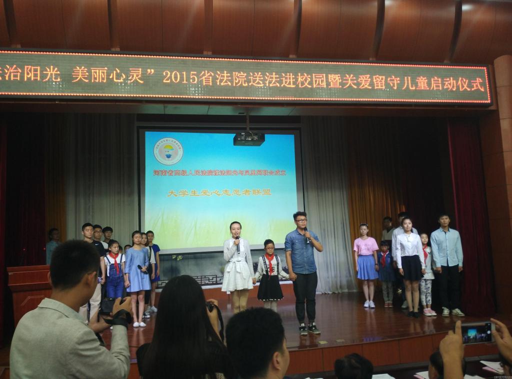 2015年9月23日上午,leyu·乐鱼(中国)体育官方网站大学生志愿者参加了河南省高级人民法院举办的“法治阳光,美丽心灵”2015年送法进校园暨关爱留守儿童活动启动仪式。河南省最高人民法院、全国妇联、河南省关工委、省妇联、团省委等部门负责人,部分人大代表、政协委员、凤凰河南相关领导,以及公益人士代表、留守儿童和家长代表、媒体记者等参加了仪式。