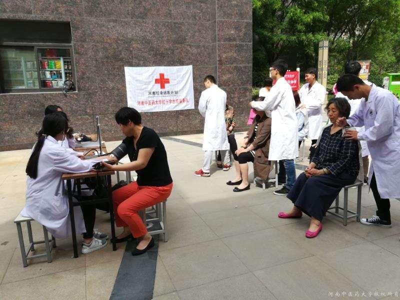 2017年5月6日,学校工会、团委组织红十字志愿服务队和针灸推拿学院阳光青年志愿者协会的志愿者在华北水利水电大学家属院举办了红十字法“进机关、进社区、进学校”义诊活动。