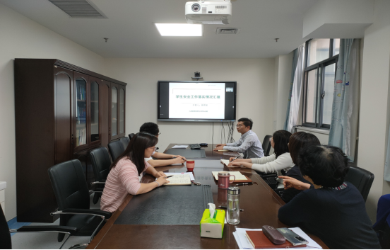 院学生工作办公室主任姚明超从宿舍安全、财产安全、人身安全、心理安全等四个方面,对本学期学院本科学生安全工作落实情况进行阶段总结,重点介绍了疫情防控、普法宣传、反诈骗知识学习等工作开展情况。研究生辅导员王龙对研究生安全工作落实情况进行总结,从研究生宿舍分布情况谈到了研究生管理的重点难点,学院结合实际情况,多方努力,加大管理力度,保障了研究生安全工作的顺利落实。