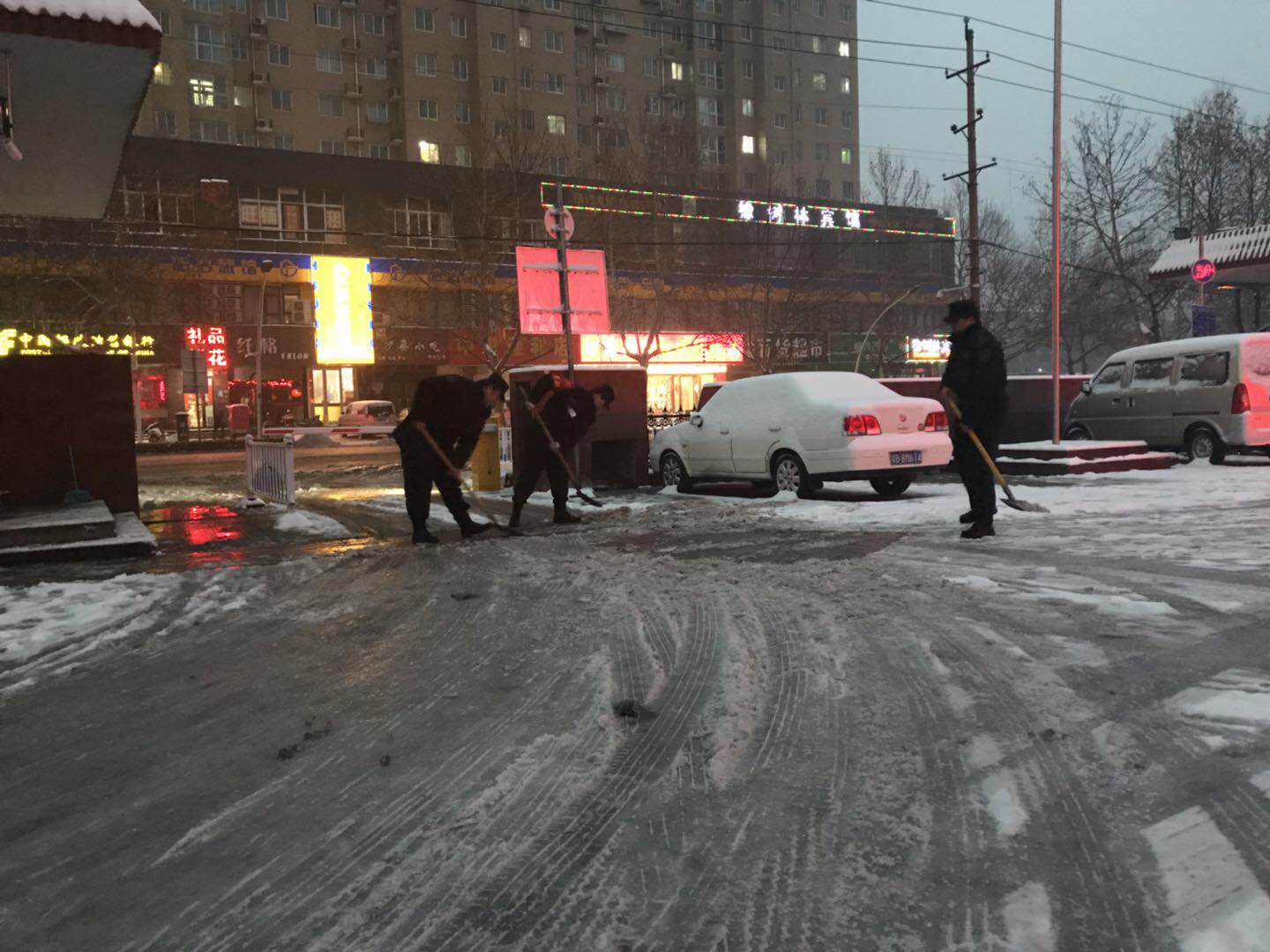 二附院安保人员黎明时分已开始清扫积雪