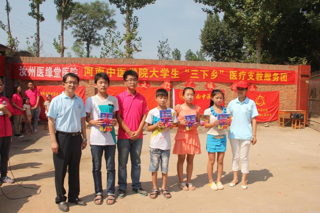 为弘扬“传承文明,播撒爱心”的精神,2014年7月8日至15日,白云苹贫困生基金会“三下乡”医疗支教服务团在指导老师李志轩、第一附属医院路永坤博士的带领下,在汝州市陵头乡大庙村、汝州市医缘堂医院开展了为期八天的医疗支教服务。