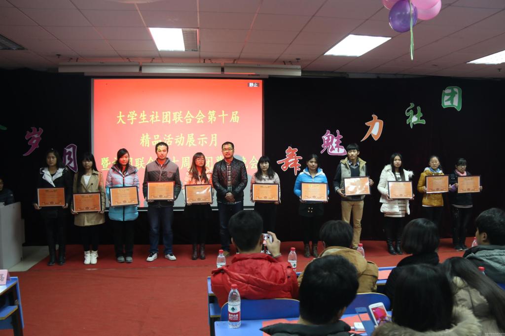 大学生社团联合会主席何玉涛介绍了leyu·乐鱼(中国)体育官方网站社联社团的发展现状并对精品活动展示月进行总结。校团委庞文奇老师为大学生英语协会、大学生环保协会等荣获此次精品活动展示月的十个优秀社团颁奖并致辞。