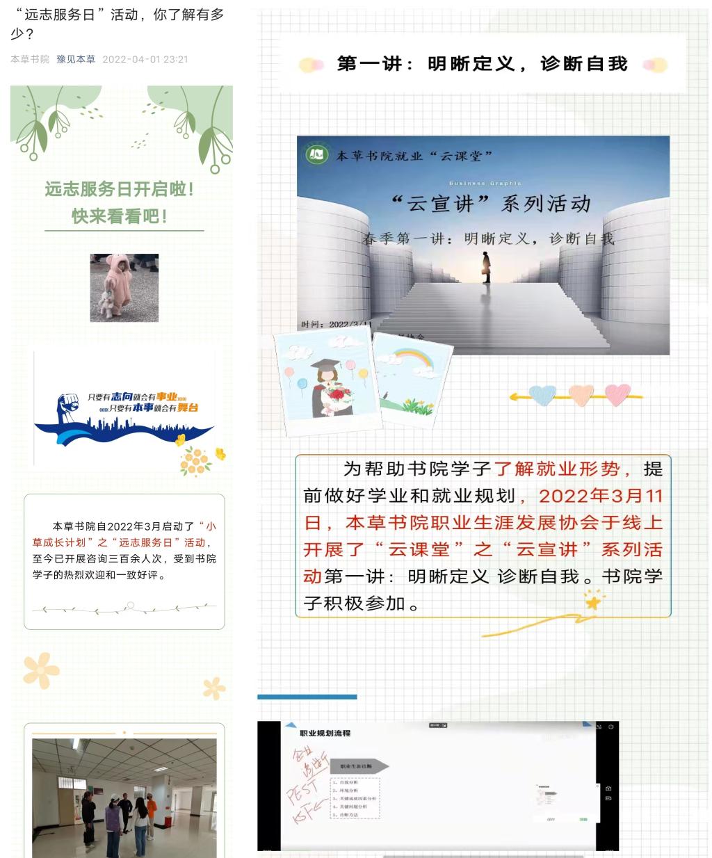 升级“远志服务日”,开设生涯规划室,书院育人导师、学业导师齐上阵,针对个性化需求,深入剖析个人特点,指导学生制订合理的学习目标、做好科学的生涯规划。至今已开展咨询400余人次,受到书院学子的一致好评。同时,结合疫情防控要求,依托“云课堂”开展简历制作、面试技巧、礼仪沟通等技能的专项辅导,帮助学生迈出求职第一步。
